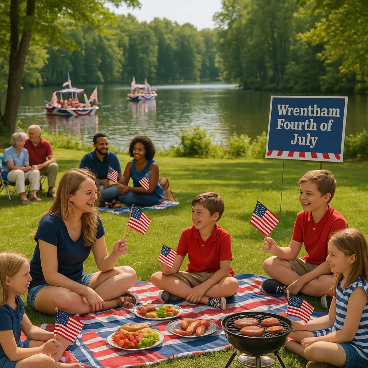 Wrentham will celebrate the Fourth of July 2025 with a laid-back lakefront gathering at Mirror Lake. The festivities include a boat parade, where locals decorate boats and cruise the lake, followed by a relaxed community barbecue.